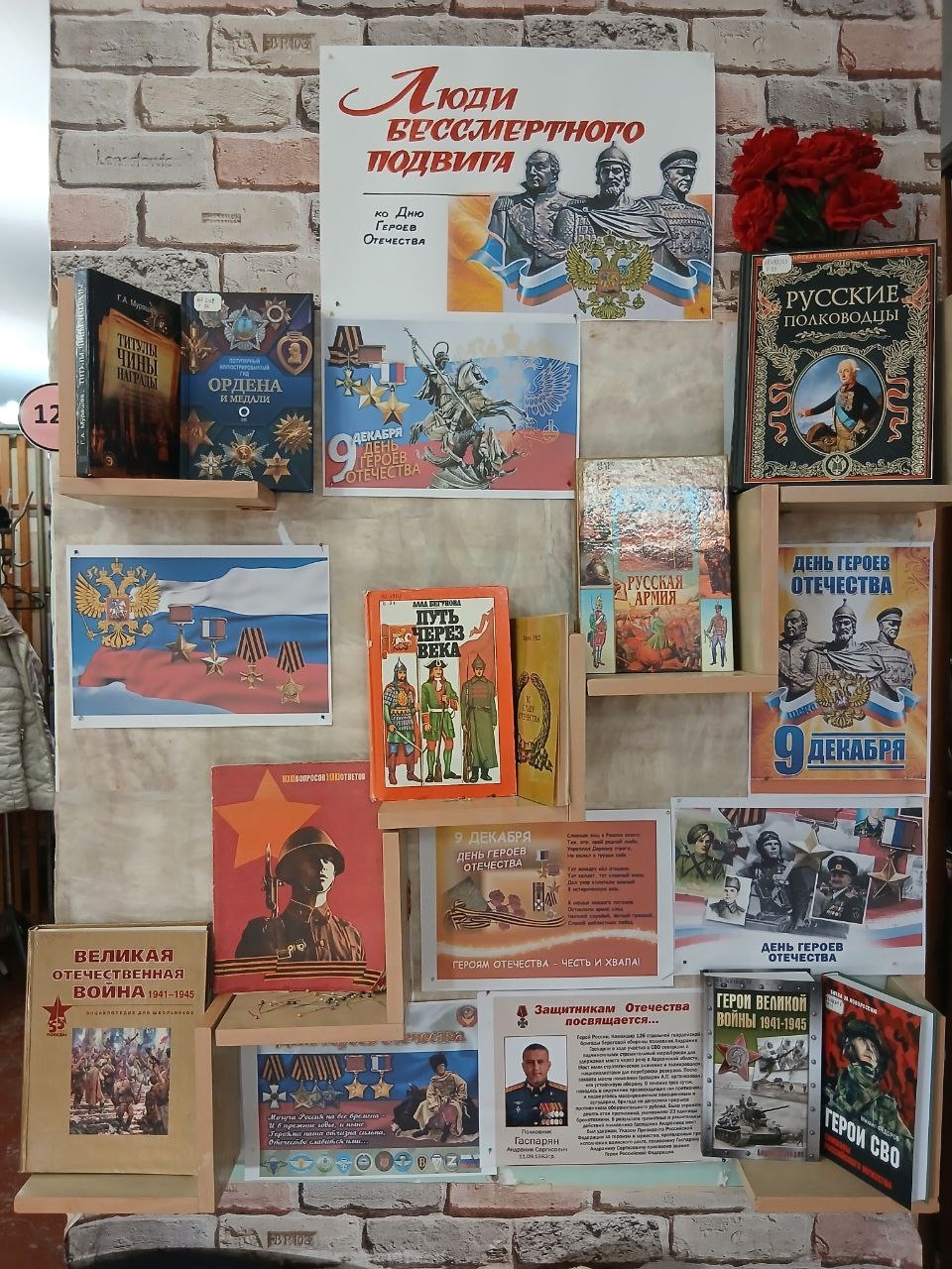 Сотрудниками библиотеки-филиала №6 им. А. П. Чехова оформлена книжная выставка ко Дню Героев Отечества. Выставка знакомит читателей с книгами, журнальными статьями, плакатами о героизме русской армии и русского народа. Энциклопедические издания раскрывают имена русских полководцев. Посетители узнают историю и имена героев Великой Отечественной войны.