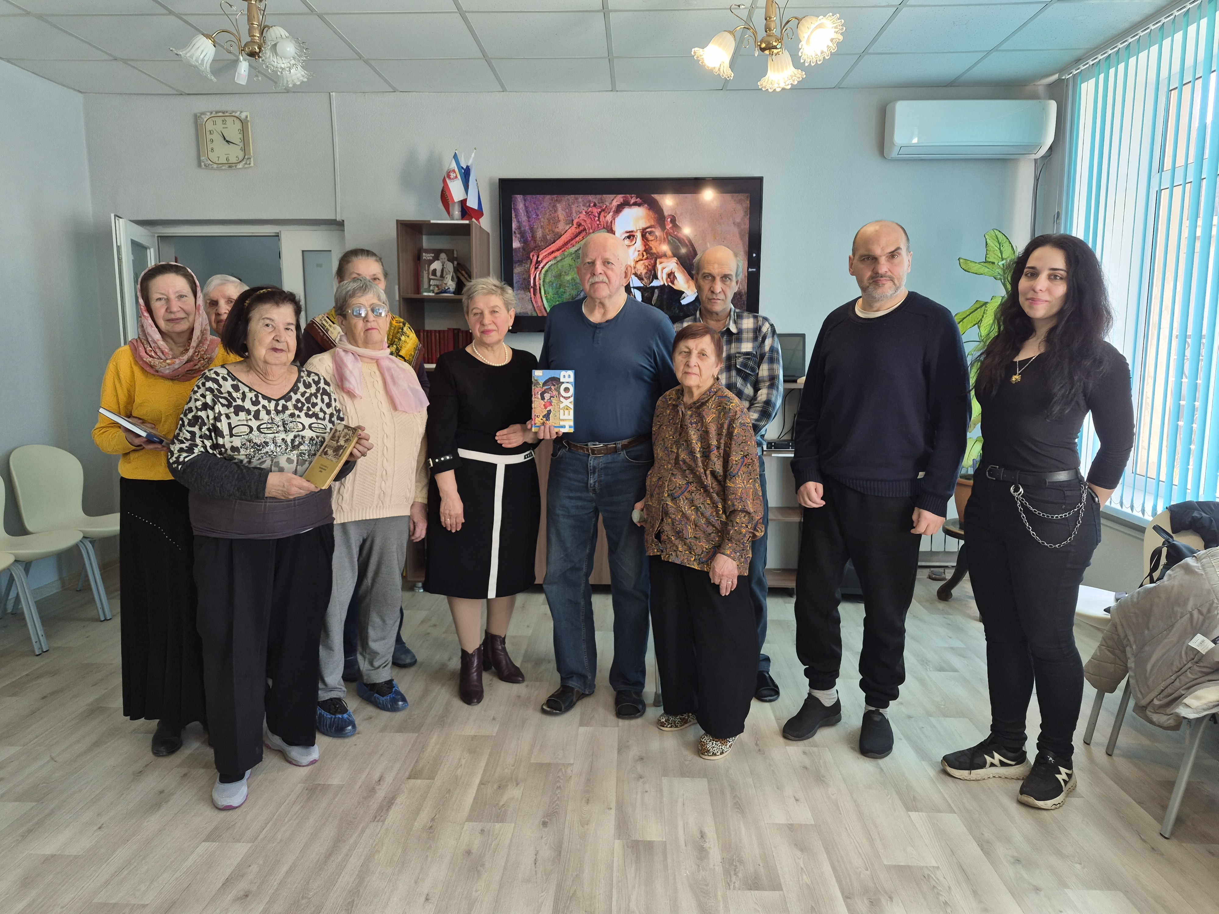 Сотрудники библиотеки-филиала № 6 им. А. П. Чехова провели для получателей услуг ГБУ РК "ЦСО граждан пожилого возраста и инвалидов г. Симферополя" час классики "Читаем Чехова вместе" в рамках творческой программы "Крым в жизни и творчестве А. П. Чехова".