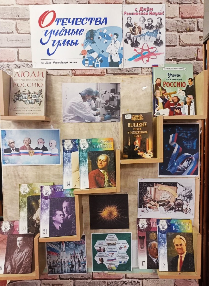Сотрудники библиотеки-филиала № 6 им. А. П. Чехова оформили книжную выставку «Отечества великие умы», ко Дню российской науки. На выставке представлены книги, раскрывающие путь к невероятным открытиям, которые принесли славу России.
