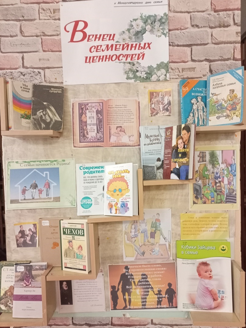 К международному Дню семьи сотрудники библиотеки-филиала №6 им. А. П. Чехова оформили книжную выставку "Венец семейных ценностей".
