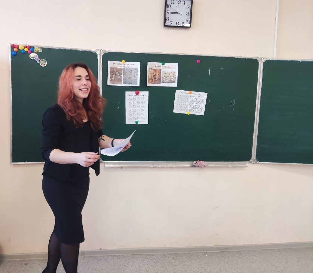 Библиотекарь рассказала об истории возникновения письменности, первых славянских символах и первооснователей нашей азбуки – солунских братьях Кирилле и Мефодии. Учащиеся с интересом сравнивали первые азбуки: глаголицу и кириллицу с современным привычным для нас алфавитом. Говоря о письменности невозможно не упомянуть историю появления книги, какой необычный путь она преодолела, прежде чем стать доступной через века каждому человеку.