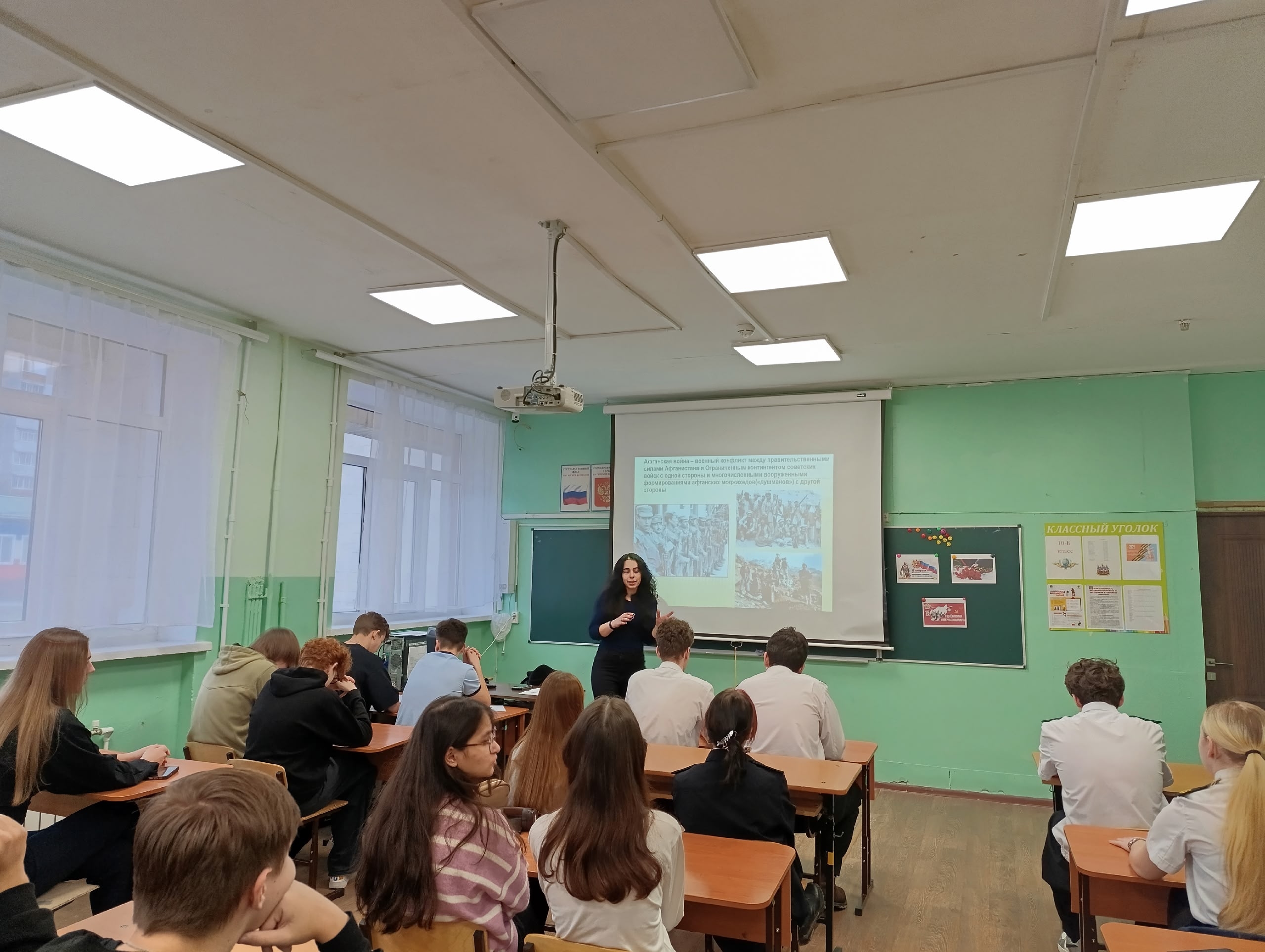 Афганистан, Чечня, Сирия, «горячие точки» на карте мира, где когда-либо звучало оружие… У этих войн нет срока давности, потому что нет срока давности у человеческой боли и человеческого подвига. Библиотекарь провела для учащихся беседу о значении даты, о выполнении интернационального долга солдатами нашей Родины в Афганистане в 1979-1989 годах, а визуальный ряд презентации позволил сделать историю Афганистана не абстрактными строчками из учебника, а живыми, осязаемыми образами. Ребята читали стихотворения, написанные в военных окопах.