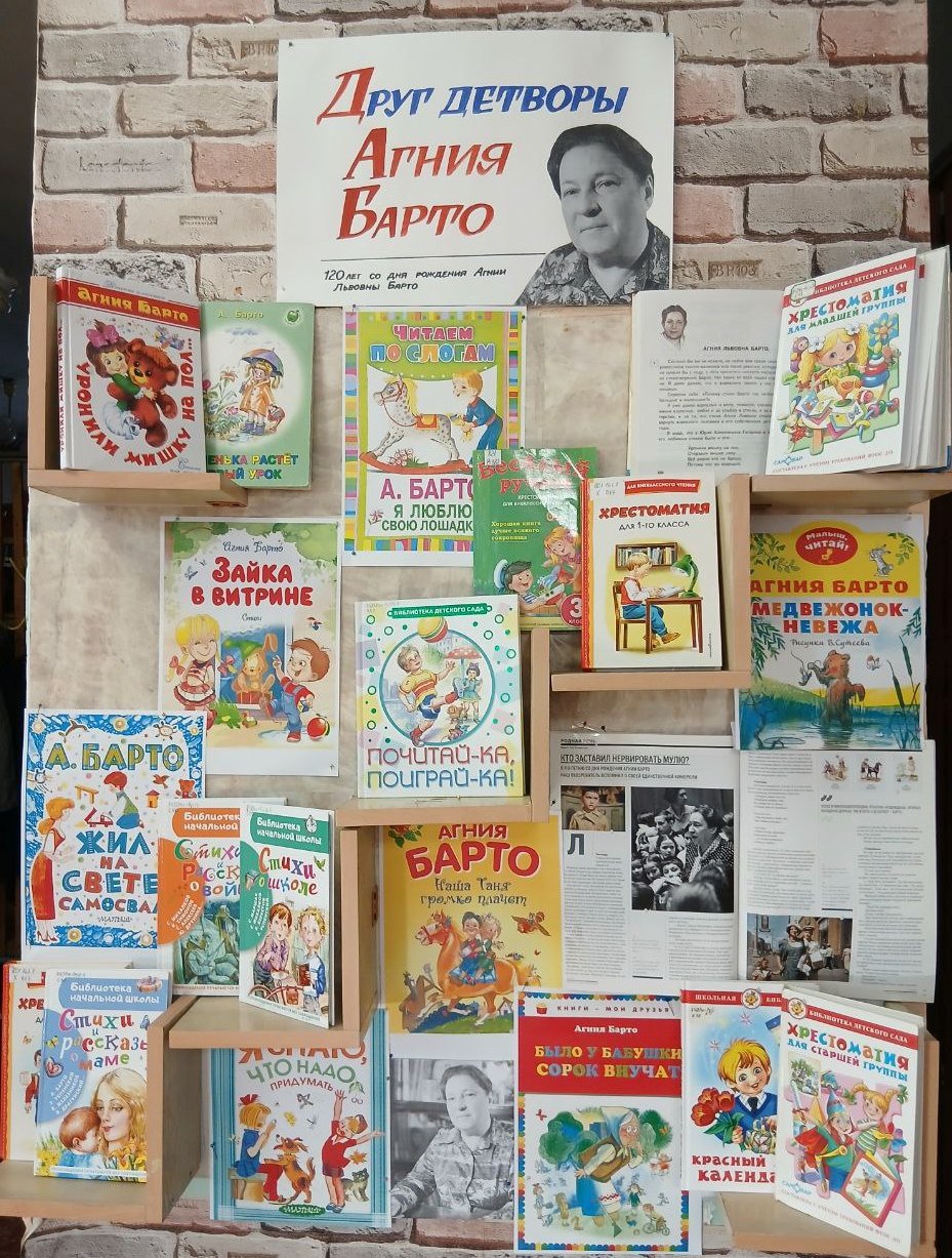 16 февраля 2026 года библиотека-филиал №6 им. А.П.Чехова представила своим читателям книжную выставку «Друг детворы – Агния Барто» 120 лет со дня рождения русской детской поэтессы Агнии Львовны Барто.